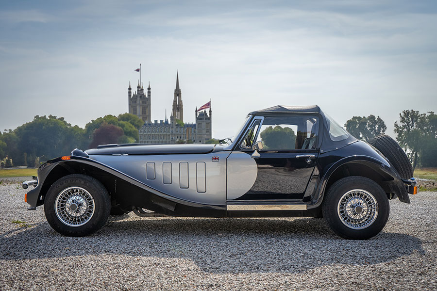Il design della Panther Kallista è senza tempo. Le linee eleganti e sinuose, il frontale distintivo con i fari tondi, la griglia a nido d'ape e le fiancate pulite sono tutti elementi che conferiscono a questa vettura un'aura di classe e raffinatezza. La capote in tela si apre per rivelare un interno lussuoso, con sedili in pelle e finiture in legno pregiato, che catturano l'essenza dell'era d'oro dell'automobilismo.