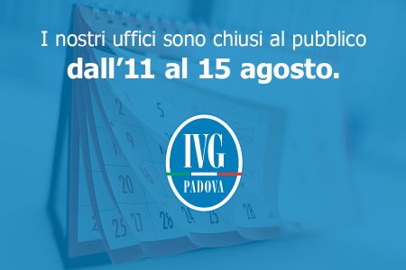 L’istituto Vendite Giudiziarie di Padova comunica che gli uffici sono chiusi al pubblico da lunedì 11 a venerdì 15 agosto.